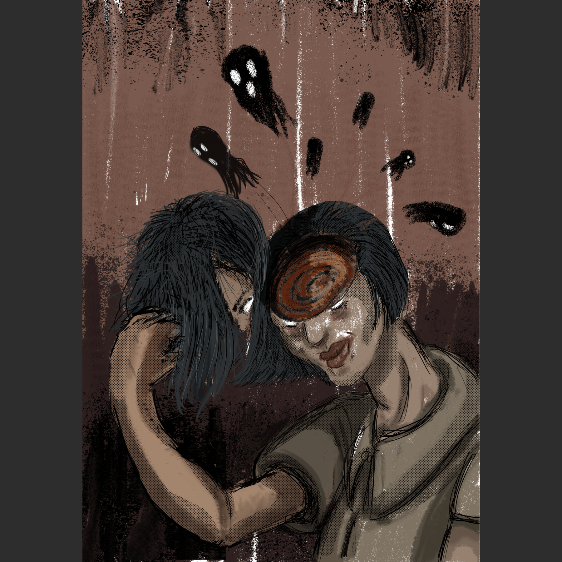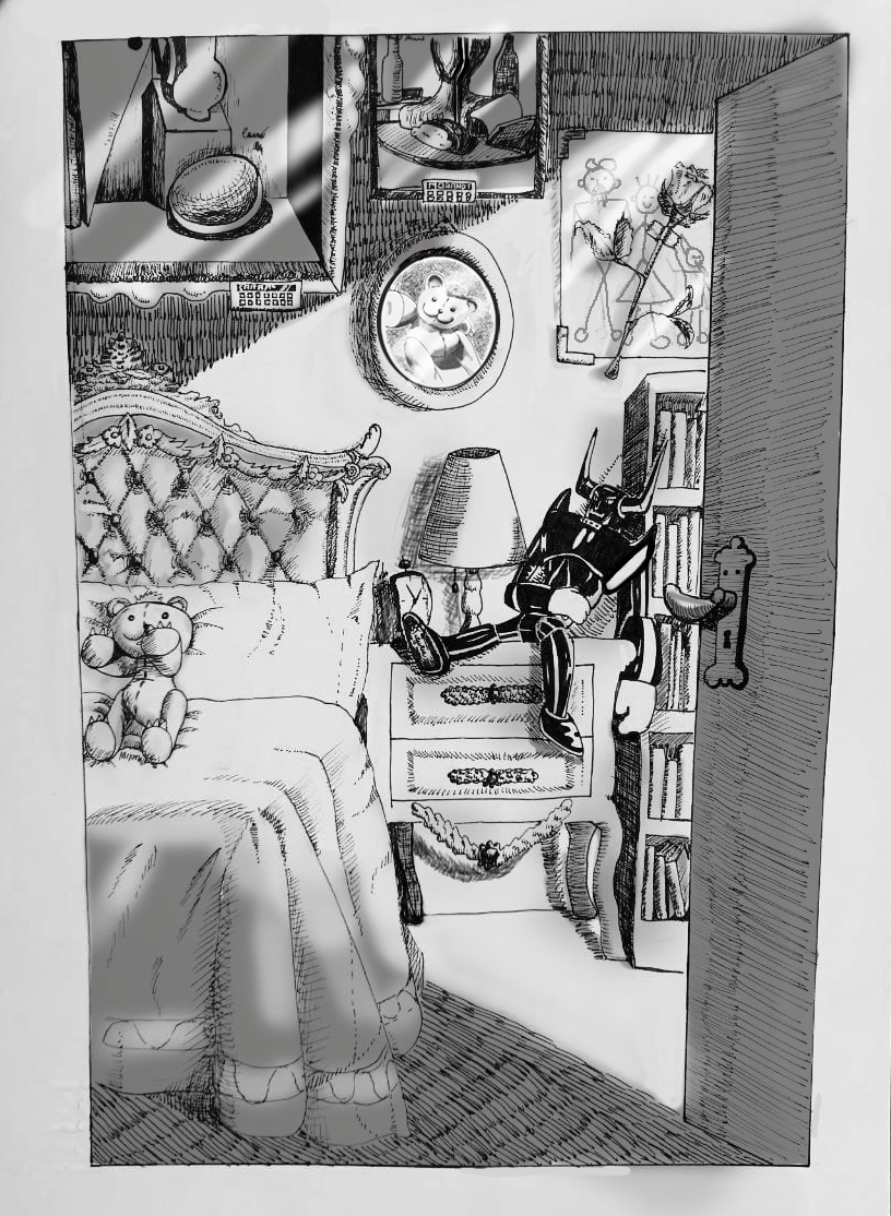Come elaborato finale, l’insegnante di Storytelling della Scuola Comics ci ha chiesto di illustrare il libro “Supertoys che durano tutta l’estate” di Brian Aldiss, creando sei piccole illustrazioni come incipit ad ogni capitolo con l’aggiunta di un’ulteriore illustrazione a tutta pagina. La storia narra di questa famiglia che adotta un bambino-robot in una società distopica dove, a causa del sovraffollamento, i bambini vengono sostituiti…